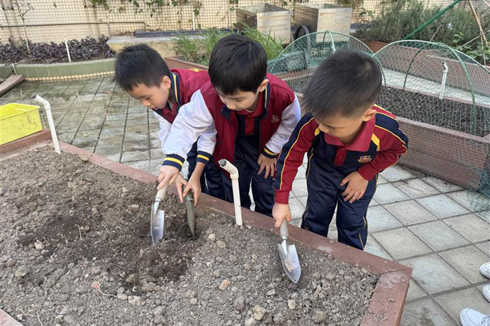 K3級學生於11月10-14日到學校天台花園開展種植活動。活動中,學生們親手栽種了番茄與紅蘿蔔,並在老師的引導下,從鬆土、播種到澆水,一步步學習植物種植的步驟與生長條件。過程中,學生們全情投入活動,展現出對探索大自然的濃厚興趣。