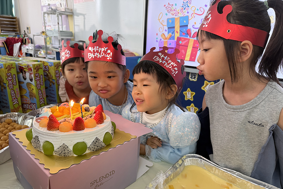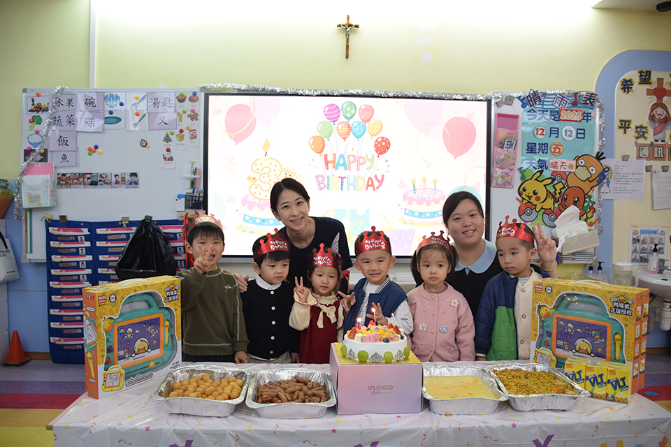 幼稚園於12月12日舉行了充滿溫馨和歡樂的氣氛的生日會,為11月及12月生日的學生慶祝生日。生日會充滿溫馨和歡樂的氣氛。學校為學生預備了大蛋糕、各種美食、有趣的小遊戲及精美的禮物,當《生日歌》的旋律響起時,小壽星許下小小的願望,悅耳的歌聲和歡愉的掌聲為小壽星送上滿滿的祝福,大家一起進行大合照,為學生留下最珍貴的回憶。