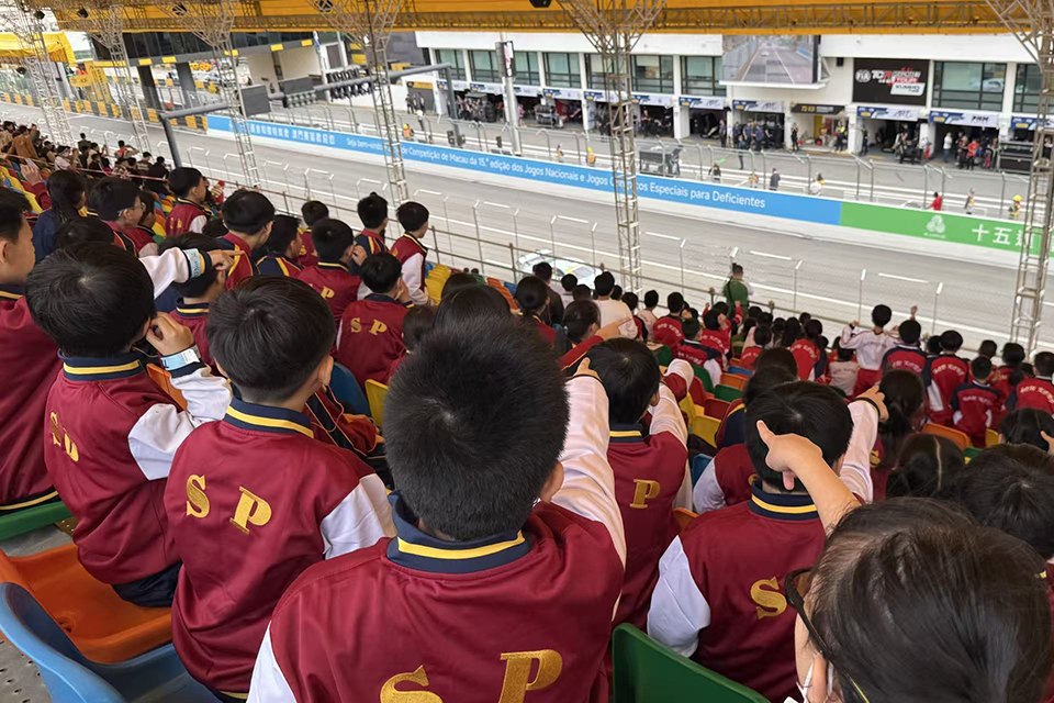 每年十一月中旬,澳門標誌性的體育盛事──歷史悠久的澳門格蘭披治大賽車如期而至。今年,這項賽事迎來了第七十二載輝煌,本校於11月13日組織學生參與“觀賽車活動”,讓同學們親臨現場感受賽事魅力,深化對大賽車的認知,同時培養對這一澳門本土體育盛事的歸屬感。當日雖天色陰沉、雲層密佈,但涼爽的天氣恰好消解了賽場的燥熱。同學們滿懷興奮出發,剛踏入賽場範圍,便被賽車飛馳而過的“隆隆”引擎聲所震撼。大家目光緊盯著賽道上亮眼疾馳的賽車,見證著它們在狹窄賽道上的極速轉彎、精彩加速與驚險超車,每一個精彩瞬間都引來同學們的陣陣歡呼。現場觀眾的呐喊助威與賽車引擎的轟鳴交織在一起,熱血氛圍十足。同學們一邊觀賽一邊相互交流,深刻領略到這項盛事的獨特魅力與澳門的城市活力。
