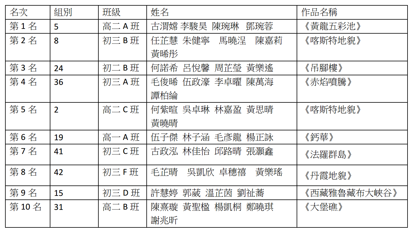 經過全校師生熱情參與投票,最終票數最高的10份作品脫穎而出,榮獲本次比賽的優異獎。獲獎名單公布如下: